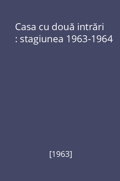 | Titlu | Casa cu două intrări : stagiunea 1963-1964 |