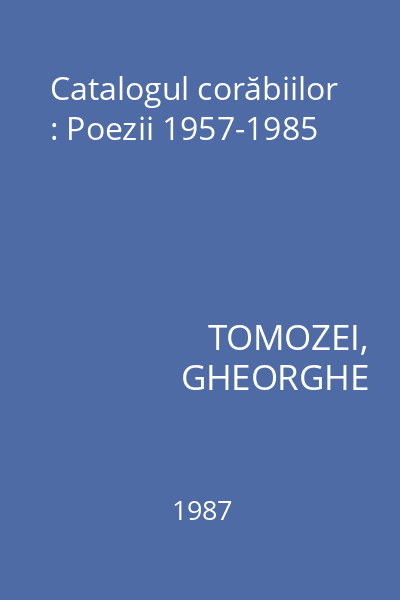 | Titlu | Catalogul corăbiilor : Poezii 1957-1985 |