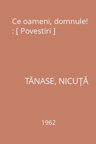 | Titlu | Ce oameni, domnule! : [ Povestiri ] |