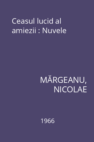 | Titlu | Ceasul lucid al amiezii : Nuvele |