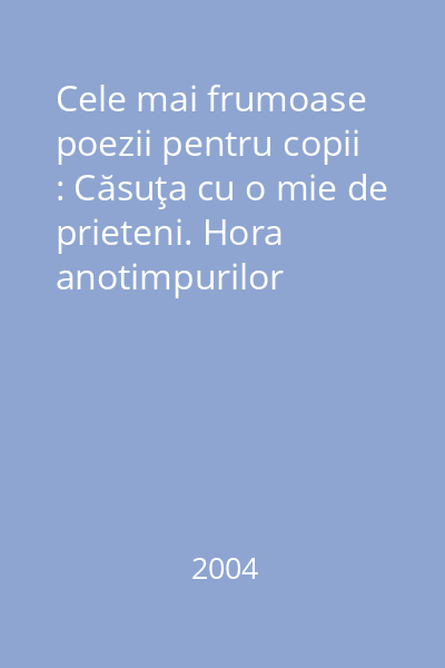 | Titlu | Cele mai frumoase poezii pentru copii : Căsuţa cu o mie de prieteni. Hora anotimpurilor |