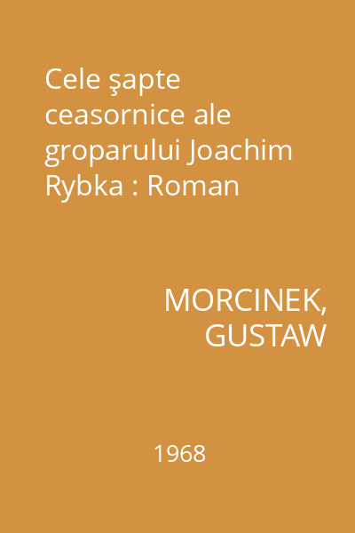| Titlu | Cele şapte ceasornice ale groparului Joachim Rybka : Roman |