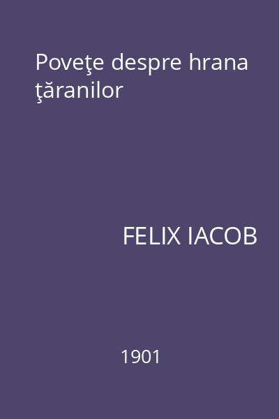 | Titlu | Cercetări asupra hranei ţăranului |