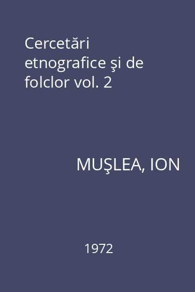 | Titlu | Cercetări etnografice şi de folclor vol. 2 |