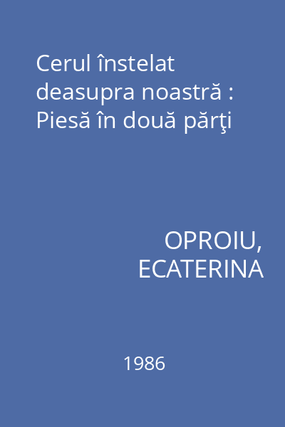| Titlu | Cerul înstelat deasupra noastră : Piesă în două părţi |