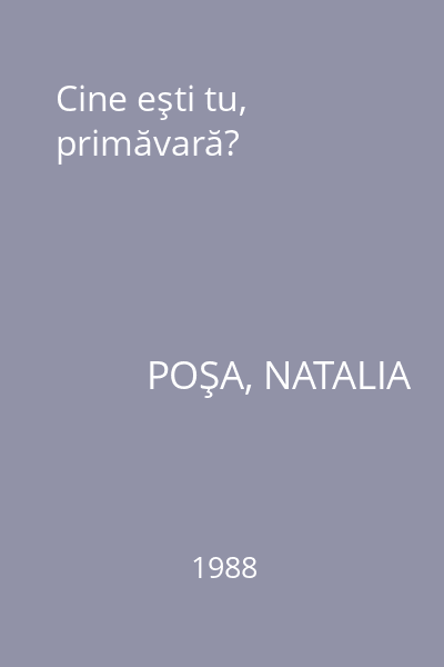 | Titlu | Cine eşti tu, primăvară? |