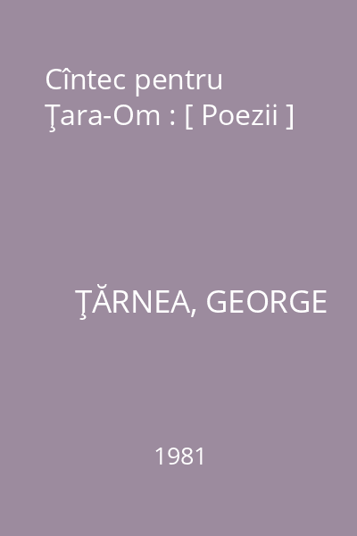 | Titlu | Cîntec pentru Ţara-Om : [ Poezii ] |