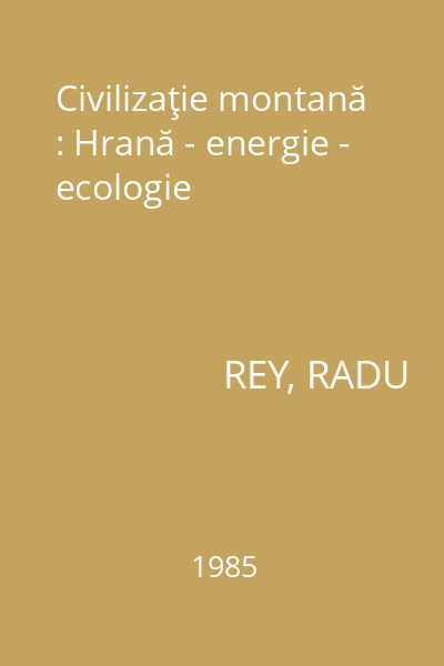 | Titlu | Civilizaţie montană : Hrană - energie - ecologie |