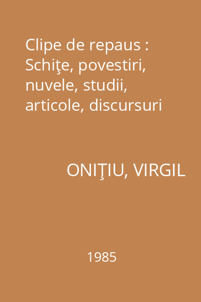 | Titlu | Clipe de repaus : Schiţe, povestiri, nuvele, studii, articole, discursuri |