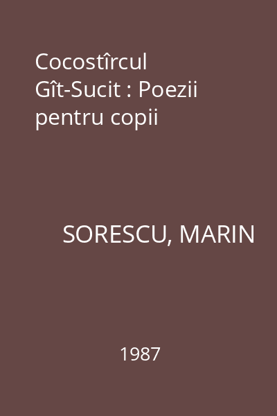 | Titlu | Cocostîrcul Gît-Sucit : Poezii pentru copii |