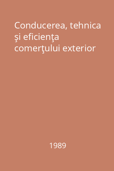 | Titlu | Conducerea, tehnica şi eficienţa comerţului exterior |