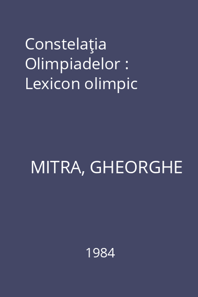 | Titlu | Constelaţia Olimpiadelor : Lexicon olimpic |