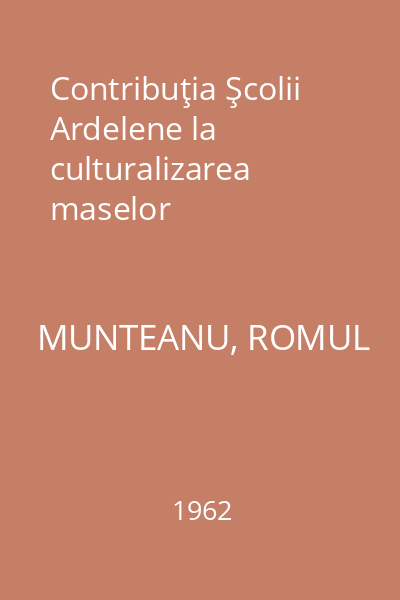 | Titlu | Contribuţia Şcolii Ardelene la culturalizarea maselor |