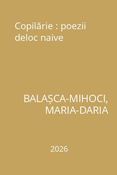 | Titlu | Copilărie : poezii deloc naive |