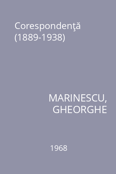 | Titlu | Corespondenţă (1889-1938) |