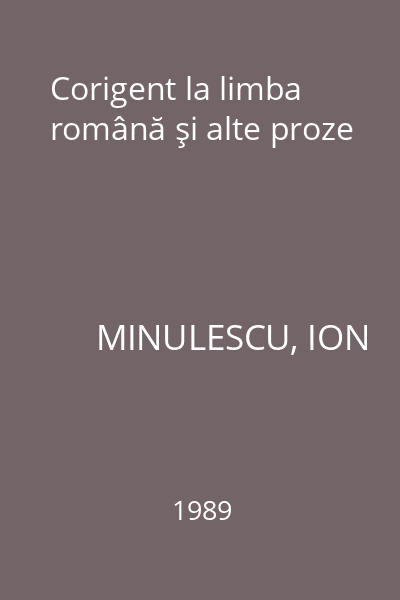 | Titlu | Corigent la limba română şi alte proze |