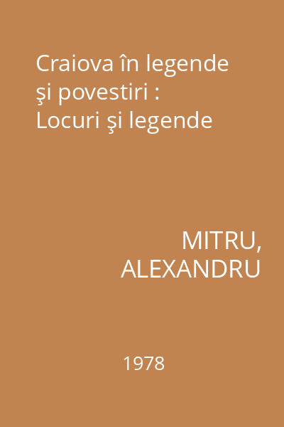 | Titlu | Craiova în legende şi povestiri : Locuri şi legende |