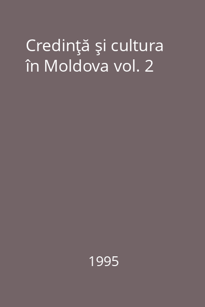 | Titlu | Credinţă şi cultura în Moldova vol. 2 |