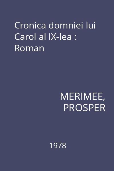 | Titlu | Cronica domniei lui Carol al IX-lea : Roman |