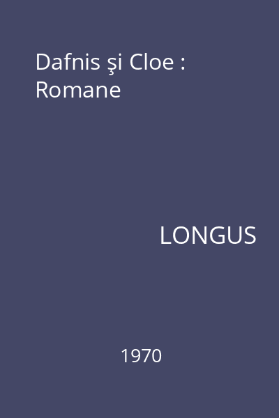 | Titlu | Dafnis şi Cloe : Romane |