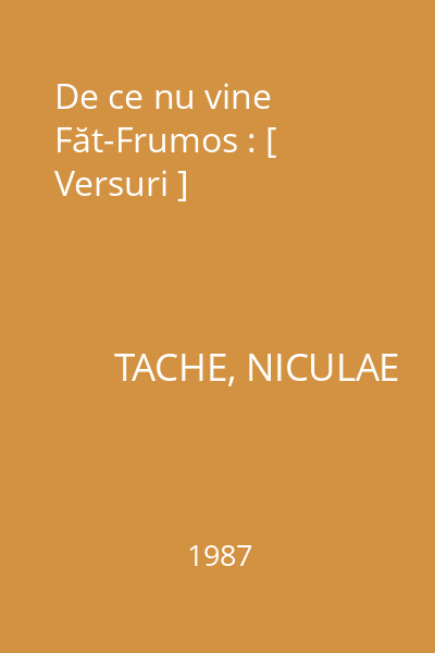 | Titlu | De ce nu vine Făt-Frumos : [ Versuri ] |