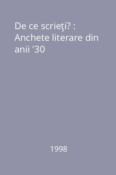 | Titlu | De ce scrieţi? : Anchete literare din anii '30 |