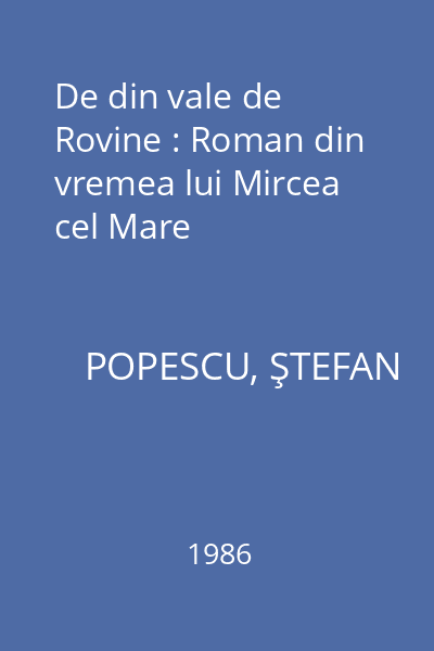 | Titlu | De din vale de Rovine : Roman din vremea lui Mircea cel Mare |