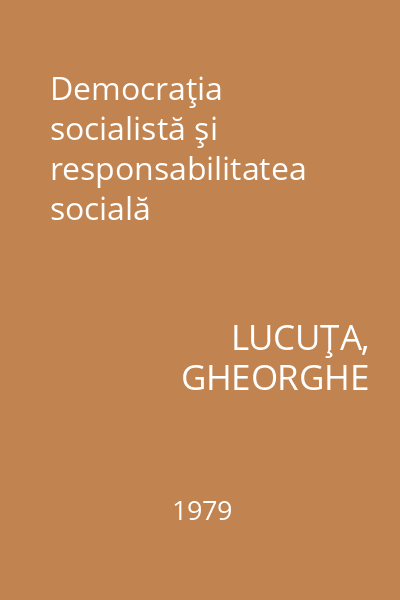 | Titlu | Democraţia socialistă şi responsabilitatea socială |