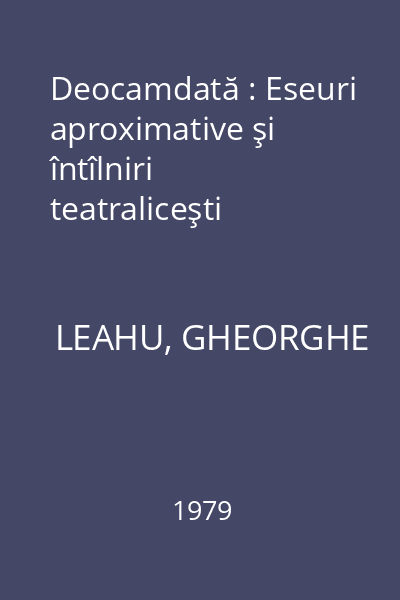 | Titlu | Deocamdată : Eseuri aproximative şi întîlniri teatraliceşti |