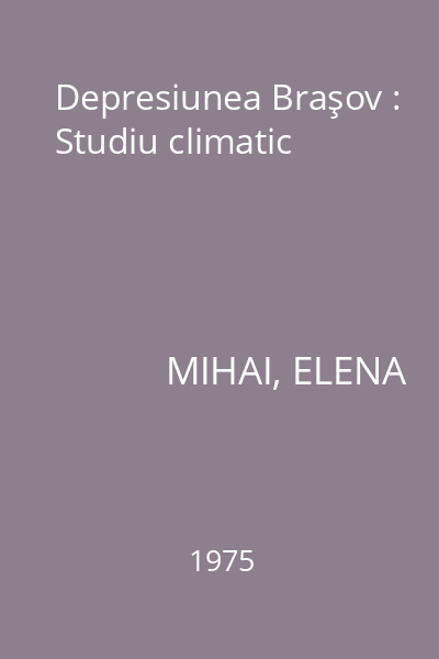 | Titlu | Depresiunea Braşov : Studiu climatic |
