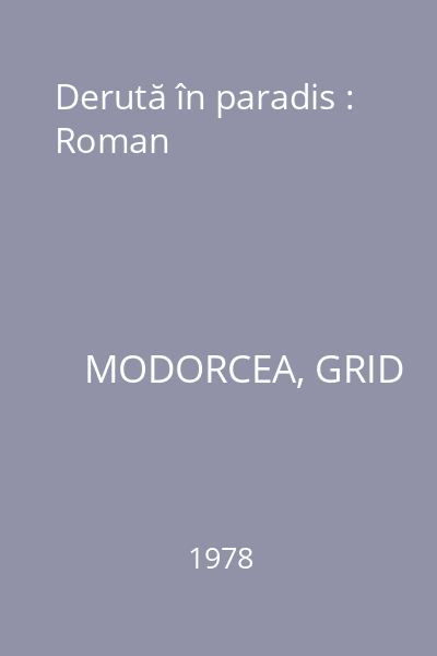 | Titlu | Derută în paradis : Roman |