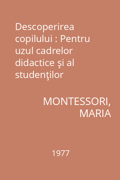 | Titlu | Descoperirea copilului : Pentru uzul cadrelor didactice şi al studenţilor |