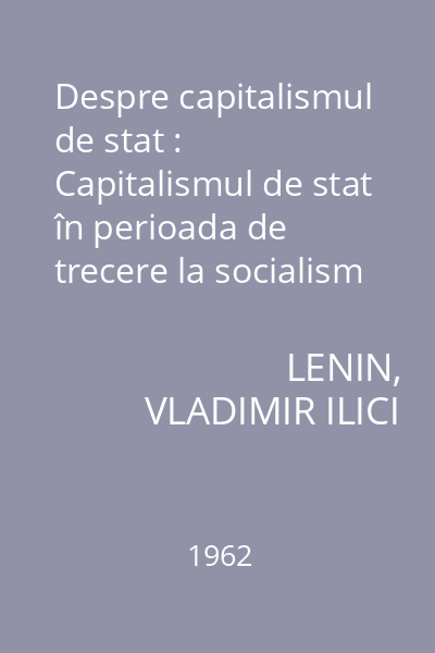 | Alte informaţii la titlu | Capitalismul de stat în perioada de trecere la socialism |