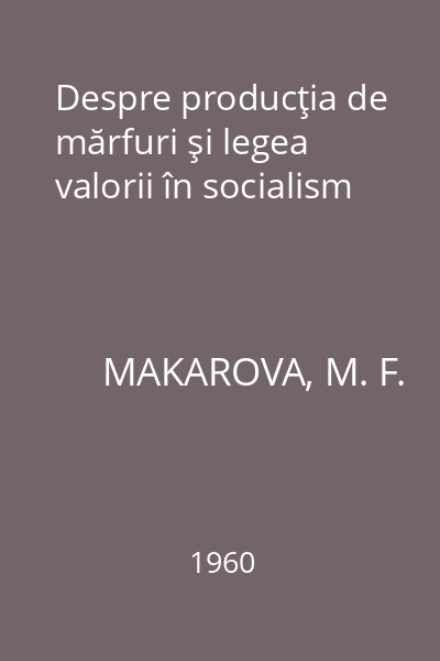 | Titlu | Despre producţia de mărfuri şi legea valorii în socialism |