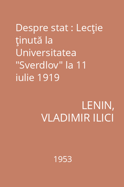 | Titlu | Despre stat : Lecţie ţinută la Universitatea "Sverdlov" la 11 iulie 1919 |