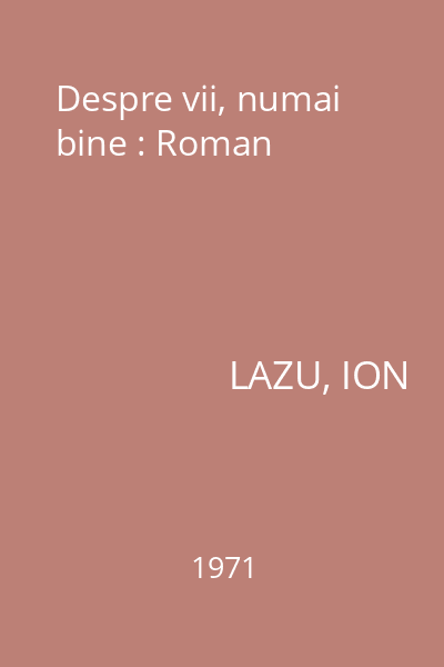 | Titlu | Despre vii, numai bine : Roman |