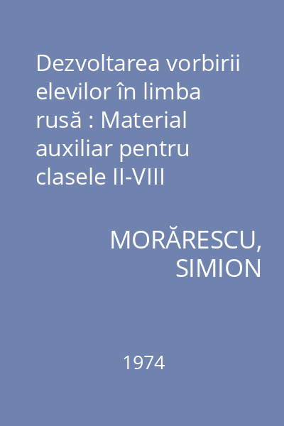 | Titlu | Dezvoltarea vorbirii elevilor în limba rusă : Material auxiliar pentru clasele II-VIII |