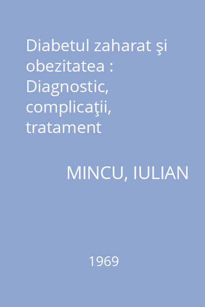 | Titlu | Diabetul zaharat şi obezitatea : Diagnostic, complicaţii, tratament |