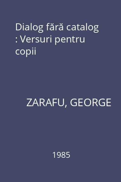 | Titlu | Dialog fără catalog : Versuri pentru copii |