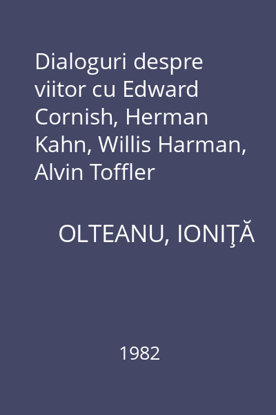 | Titlu | Dialoguri despre viitor cu Edward Cornish, Herman Kahn, Willis Harman, Alvin Toffler |