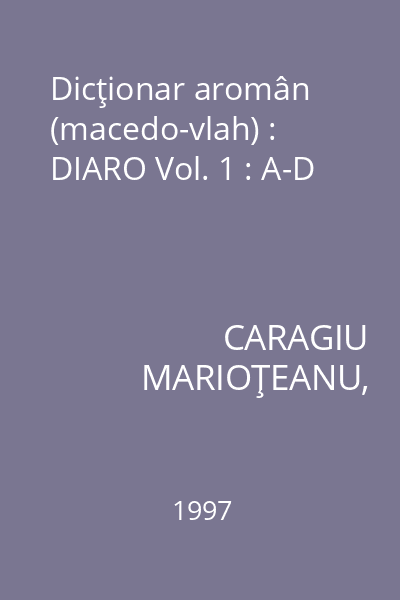 | Titlu | Dicţionar aromân (macedo-vlah) : DIARO Vol. 1 : A-D |