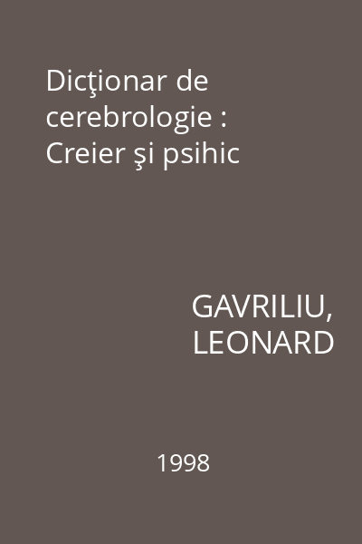 | Titlu | Dicţionar de cerebrologie |