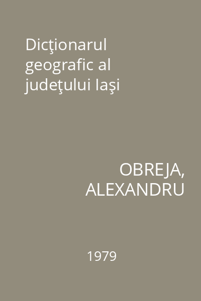 | Titlu | Dicţionarul geografic al judeţului Iaşi |