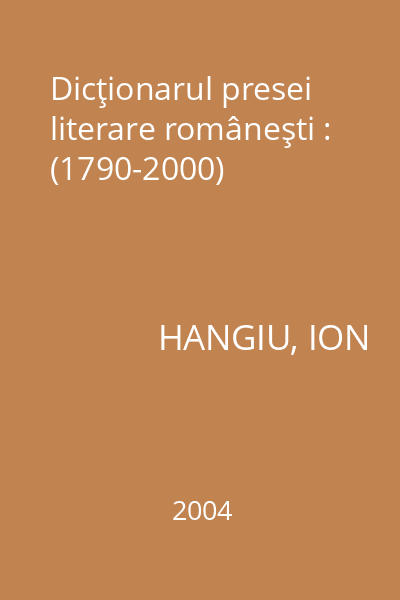 | Titlu | Dicţionarul presei literare româneşti : (1790-2000) |