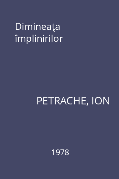 | Titlu | Dimineaţa împlinirilor |