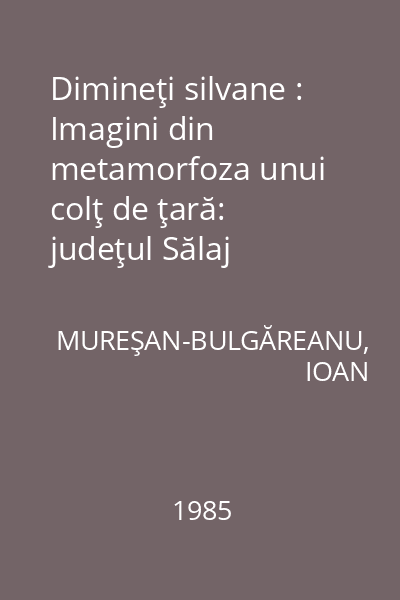 | Titlu | Dimineţi silvane : Imagini din metamorfoza unui colţ de ţară: judeţul Sălaj |