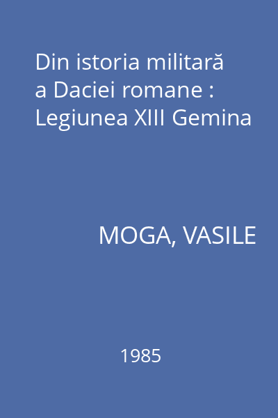 | Titlu | Din istoria militară a Daciei romane : Legiunea XIII Gemina |