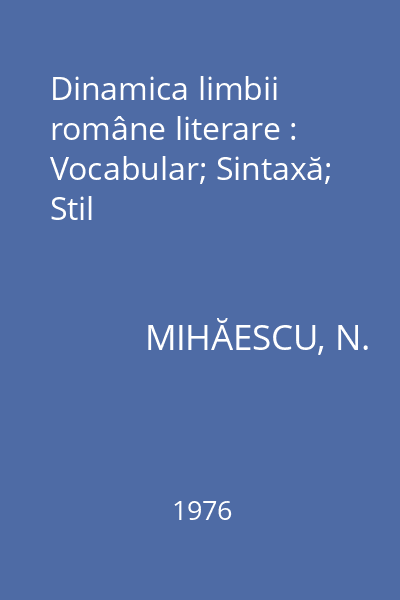 | Titlu | Dinamica limbii române literare : Vocabular; Sintaxă; Stil |