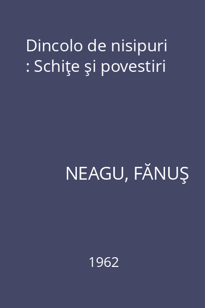 | Titlu | Dincolo de nisipuri : Schiţe şi povestiri |