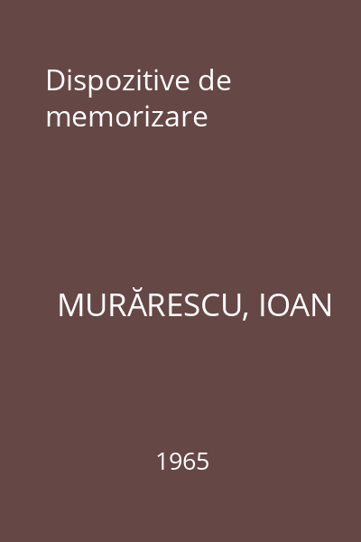 | Autor principal | MURĂRESCU, IOAN |